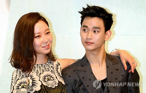 | △ 배우 공효진과 김수현이 5월 11일 오후 서울 강남구 역삼동 더라움에서 열린 KBS 2TV 새 드라마 '프로듀사' 제작발표회에서 포즈를 취하고 있다. |