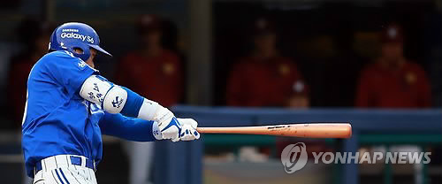 이승엽은 22일 광주-KIA 챔피언스필드에서 열린 KIA 타이거즈와의 2015 타이어뱅크 KBO리그 방문경기에서 0-0으로 맞선 2회초 선제 솔로 홈런을 터트렸다.