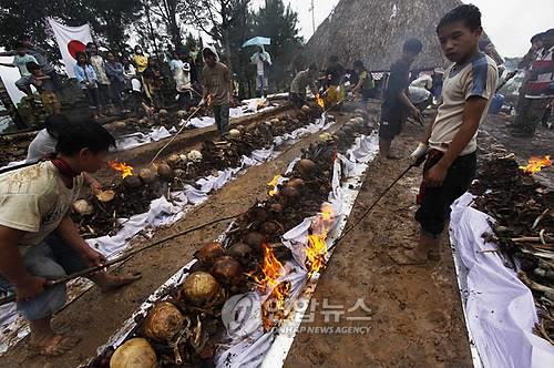 | △ 필리핀 전역에서 수습된 2차대전 중 전몰 일본군 4천명의 유골이 2009년 11월 화장돼 일본으로 송환되기 전 모습(EPA=연합뉴스.자료사진) |