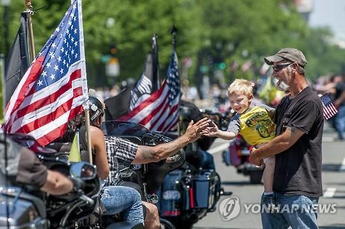 (서울=연합뉴스) 한미희 기자 = 메모리얼데이(현충일)를 하루 앞둔 24일(현지시간) 미국 수도 워싱턴에서 전쟁포로(POW), 실종자(MIA)에 대한 관심을 촉구하며 오토바이를 타고 퍼레이드를 벌이는 '롤링 선더(Rolling Thunder)' 행사가 열렸다.
