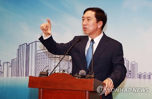 | △ 울산대교 통행료 밝히는 김기현 울산시장 (울산=연합뉴스) 이상현 기자 = 김기현 울산시장이 26일 울산시청 프레스센터에서 다음달 1일 개통할 울산대교 통행료에 대해 밝히고 있다. 2015.5.26 leeyoo@yna.co.kr |