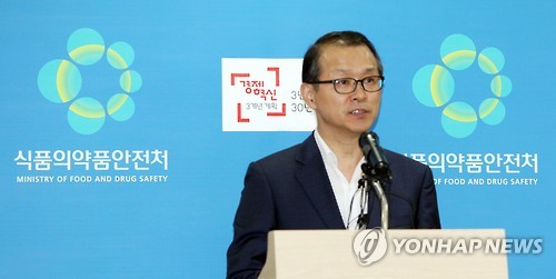 | △ 브리핑하는 식품의약품안전처 장기윤 차장 (청주=연합뉴스) 김형우 기자 = 26일 오후 청주시 오송읍 식품의약품안전처에서 장기윤 차장이 기자회견을 열어 논란이 된 백수오와 관련 브리핑을 하고 있다. 식품의약품안전처는 시중에 유통되는 백수오 제품 207개를 대상으로 이엽우피소 함유여부를 조사했다. 식약처 조사결과 시중에 유통되는 백수오 제품 가운데 이엽우피소가 검출되지 않은 '진짜' 백수오 제품은 5%에 불과한 것으로 나타났다. |