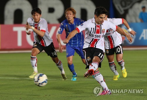 | △ 실축하는 몰리나 (오사카 사진공동취재단=연합뉴스) AFC(아시아축구연맹) 챔피언스리그 16강 FC서울과 감바 오사카의 2차전이 27일 오사카 엑스포70 경기장에서 열렸다. FC서울 몰리나가 패널티킥을 실축하고 있다. 2015.5.27 photo@yna.co.kr |
