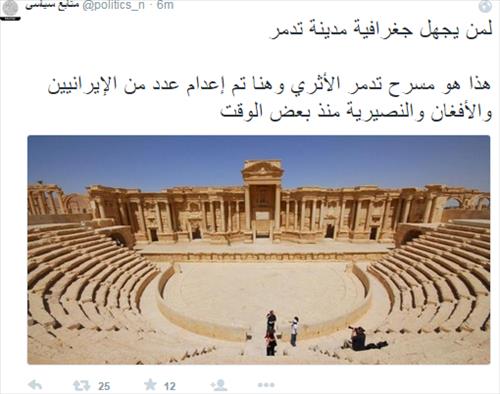 영국 테러리즘 연구소인 퀼리엄재단의 찰리 윈터 연구원도 이날 트위터에 "타드무르(팔미라)의 활동가는 IS가 최근 원형극장에서 시리아와 이란, 아프가니스탄 출신 남자들을 처형했다고 주장했다"고 밝혔다.