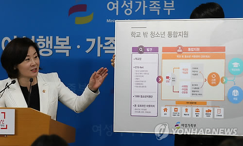 학교 밖 청소년 지원에 관한 법률은 김희정 여가부 장관이 국회의원이던 2013년 발의했다.