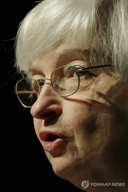 | △ 금리 인상 대비하세요 (프로비던스 AP=연합뉴스) 재닛 옐런 미국 연방준비제도(연준) 의장이 22일(현지시간) 미 로드아일랜드주 프로비던스 지역 상공회의소 연설에서 "올해 안 어느 시점에는 연방기금금리 목표치를 높이기 위한 초기 조치에 나서고 통화정책의 정상화 절차를 시작하는 게 적절하다"고 밝히고 있다. 이날 옐런의 발언으로 올 9월 연방공개시장위원회(FOMC) 정례회의 때부터 기준금리 인상에 착수할 것이라는 금융시장 전문가들의 예상에 무게가 실릴 것으로 보인다. marshal@yna.co.k Janet L. Yellen, chair of the Board of Governors of the Federal Reserve System delivers an address to the Greater Providence Chamber of Commerce at their annual Economic Outlook Luncheon Friday, May 22, 2015, in Providence, R.I. (AP Photo/Stephan Savoia) |