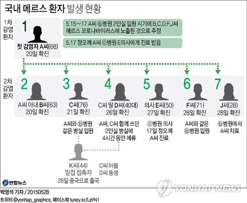 (서울=연합뉴스) 오수진 기자 = 국내에서 중동호흡기증후군(MERS·메르스) 첫 번째 환자가 발생한 지 8일 만에 환자가 7명으로 늘어나면서 한국은 중동을 제외하고 메르스 환가가 가장 많이 발생한 나라가 됐다.