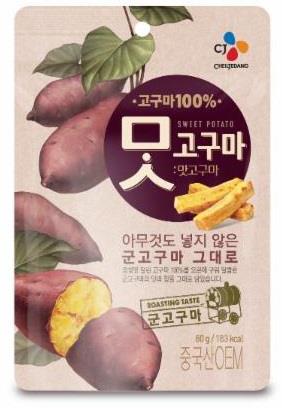 말린 고구마를 오븐에 구운 것으로, 군고구마처럼 표면이 노릇하게 구워져 쫄깃한 식감을 느낄 수 있고, 안쪽은 부드러운 맛을 낸다고 CJ제일제당은 설명했다.