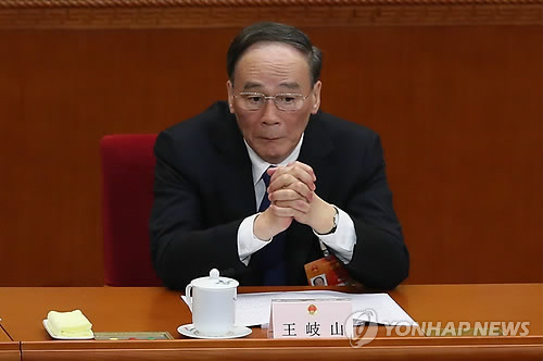| △ 중국 전국인민대표대회(전인대) 행사 개막식에 참석한 왕치산(王岐山) 중국공산당 당중앙 기율검사위원회 서기(정치국 상무위원) |