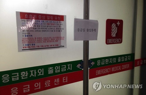 (춘천=연합뉴스) 이재현 기자 = 강원 춘천에서 중동 호흡기증후군(메르스) 의심 환자가 신고된 가운데 이 환자를 진료한 대학병원 응급실도 임시 폐쇄됐다.