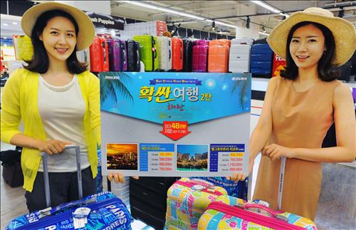 홈플러스 매장 내 모두투어 대리점에서 판매되는 주요 상품과 가격은 ▲ 3박5일(수요일 출발·대한항공·5성급 애드리 리조트) 39만9천원부터 ▲ 4박6일(토요일 출발·대한항공·5성급 맹그로브 트리 리조트) 49만9천원부터 등이다.
