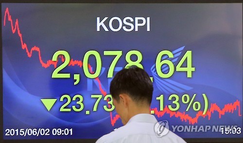 코스피, 2,070선 '후퇴'…메르스·환율 악재 겹쳐