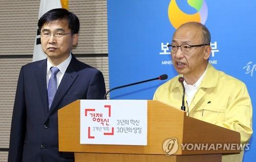 | △ 문형표 보건복지장관, 메르스 관련 브리핑 (세종=연합뉴스) 배재만 기자 = 문형표 보건복지부 장관이 2일 오후 정부세종청사 공용브리핑룸에서 메르스 관련 관계부처 회의 결과 및 향후 대책에 대해 브리핑하고 있다. 왼쪽은 김우주 대한감염학회 이사장. |