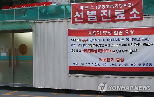 | △ 메르스 선별 진료소 (서울=연합뉴스) 박동주 기자 = 중동호흡기증후군(메르스)의 확산 우려가 커지는 가운데 31일 오후 서울 국립중앙의료원에 메르스 선별 진료소가 설치되어 있다. 2015.5.31 pdj6635@yna.co.kr |