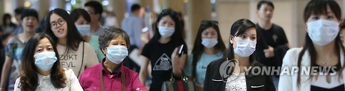 | △ 메르스 확산 '유커 특수' 타격 현실화…300여명 방한 취소 (영종도=연합뉴스) 임헌정 기자 = 중동호흡기증후군(메르스) 여파로 유커(遊客·중국인 관광객) 300여명이 한국 여행을 취소한 것으로 나타났다. 지난해 610만명이 방한, 우리나라의 관광·유통산업을 떠받쳤던 '유커 특수'가 메르스 확산으로 타격을 받을 수 있다는 우려가 현실화하고 있다. 사진은 마스크를 착용하고 2일 오후 인천국제공항에 입국하는 외국인 관광객들. 2015.6.2 kane@yna.co.kr |