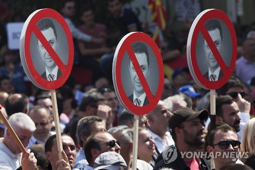 | △ 지난달 17일 열린 마케도니아의 반정부 시위 모습(자료사진) |
