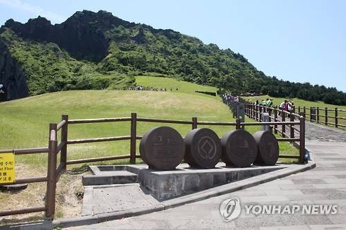 | △ (서귀포=연합뉴스) 고성식 기자 = 중동호흡기증후군(메르스) 확산에 대한 불안감으로 여름으로 들어서는 6월의 첫 주말이자 현충일인 6일 제주 세계자연유산인 성산일출봉에 탐방객 9천명가량이 찾아 평소 1만3천명이 넘는 탐방 인원보다 눈에 띄게 한산한 모습을 보이고 있다. 2015.06.06 koss@yna.co.kr |