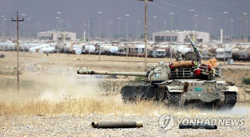 (바그다드 AP=연합뉴스) 이라크 정부군이 7일(현지시간) 시아파 민병대의 지원을 받아 수니파 무장조직 이슬람국가(IS)가 점령하던 전략 요충도시 바이지를 탈환했다.