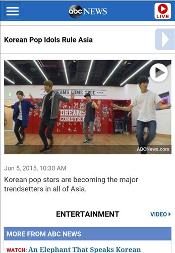 ABC 뉴스는 지난 5일(현지시간) 'K팝 아이돌이 아시아를 지배하다'(Korean Pop Idols Rule Asia)란 제목의 보도에서 SM의 트레이닝 프로그램을 소개했다.