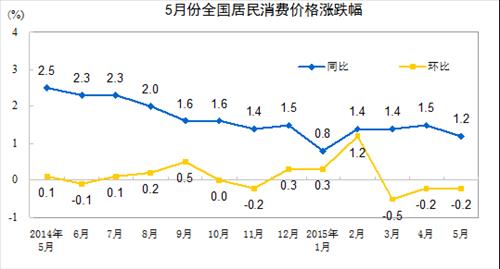 (상하이=연합뉴스) 한승호 특파원 = 중국의 5월 소비자물가지수(CPI)가 지난해 같은 기간에 비해 1.2% 상승했다고 중국 국가통계국이 9일 밝혔다.