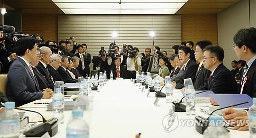| △ 아베 신조(安倍晋三) 일본 총리가 전후(戰後) 70주년을 맞아 여름 발표할 이른바 '아베 담화'에 대한 전문가 논의가 지난 2월25일 시작했을때의 모습(교도.연합뉴스.자료사진) |