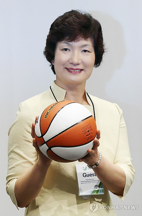 | △ 인천AG 농구 공인구 공개하는 박찬숙 (인천=연합뉴스) 윤태현 기자 = 21일 오전 인천시 중구 하버파크호텔에서 열린 '2014인천아시아경기대회 조추첨식'에서 박찬숙 전 여자농구 국가대표 선수·코치가 농구 공인구를 공개하고 있다. 2014.8.21 tomatoyoon@yna.co.kr |