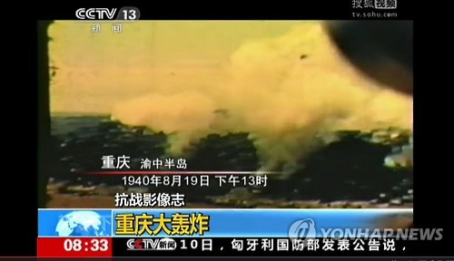 관영 중국중앙(CC)TV는 11일 약 10분 분량의 특집 보도를 통해 당시 충칭에서 일본군이 전투기를 대거 동원해 무차별 폭격을 가하는 미공개 영상을 대거 공개했다.