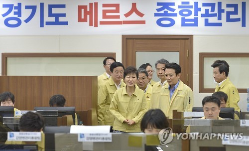 (서울=연합뉴스) 강병철 기자 = 박근혜 대통령은 12일 경기도 수원시 경기도청에 설치된 경기도 중동호흡기증후군(메르스) 종합관리대책본부를 방문했다.