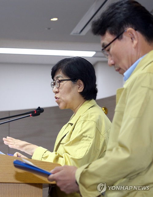 | △ '메르스 환자 현황은' (세종=연합뉴스) 배재만 기자 = 정은경 중앙메르스관리대책본부 현장점검반장이 12일 오전 정부세종청사 보건복지부 공용브리핑룸에서 열린 정례 브리핑에서 중동호흡기증후군(메르스) 환자 현황에 대해 설명하고 있다. 오른쪽은 권덕철 총괄반장. 2015.6.12 scoop@yna.co.kr http://blog.yonhapnews.co.kr/f6464 |