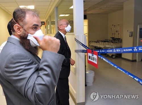 | △ 후쿠다 게이지 WHO 사무차장 등 메르스 합동평가단이 지난 10일 삼성서울병원을 방문해 응급실과 병실 등을 둘러보고 있다. (보건복지부 제공) |