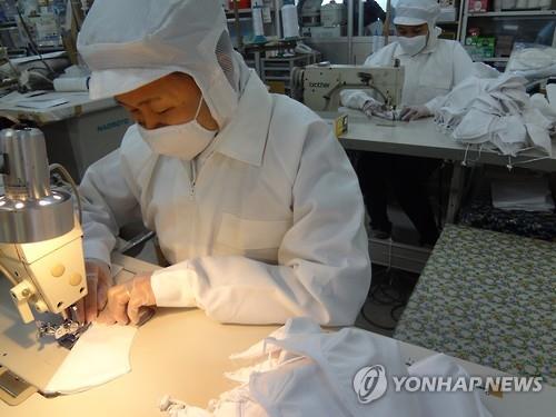| △ 일본 아이치(愛知)현 도요하시(豊橋)시에 본사를 둔 마스크 제조업체 구레바(くればぁ, Clever)의 공장에서 12일 직원들이 마스크를 제작하고 있다.(구레바 제공) |