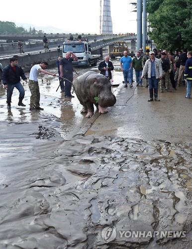 (서울·모스크바=연합뉴스) 이율 기자 유철종 특파원 = 흑해 연안의 옛 소련국가 조지아(러시아명 그루지야) 수도 트빌리시에서 14일(현지시간) 홍수로 동물원의 울타리가 파손되면서 호랑이와 사자, 늑대 등 맹수들이 대거 탈출했다.