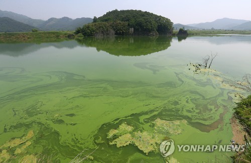 | △ 낙동강에 새겨진 초록색 물결 (대구=연합뉴스) 김준범 기자 = 10일 오전 대구 달성군 구지면 낙동강 도동나루터에 녹조현상이 관찰되고 있다. 대구환경운동연합은 낙동강 달성보 인근, 고령교∼도동서원 앞, 도동나루터∼우곡교 등 3곳에 녹조가 생겼다고 밝혔다. 2015.6.10 psykims@yna.co.kr |