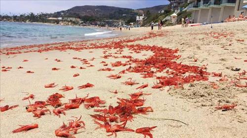 미국 캘리포니아 주 서부 해안가 백사장에 지난 14일(현지시간) 수천 마리의 홍게가 몰려든 진귀한 광경이 연출됐다.