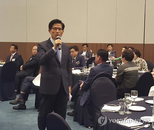 | △ 특강하는 김문수 전 지사 (경주=연합뉴스) 김문수 전 경기도지사가 16일 경주 현대호텔에서 경주동국대 사회과학대학원 초청으로 '위기의 한국 어떻게 극복할 것인가'라는 주제로 특강을 하고 있다. 2015.6.16 shlim@yna.co.kr |