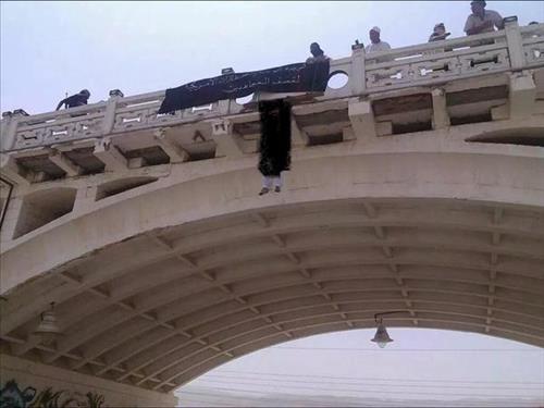 인터넷을 통해 전파된 사진엔 어느 해변에서 흰 옷을 입은 2명이 군중에 둘러싸인 채 무릎을 꿇은 장면과 총살된 뒤 시신이 십자가 모양의 틀에 묶여 다리에 매달린 모습이 찍혔다.