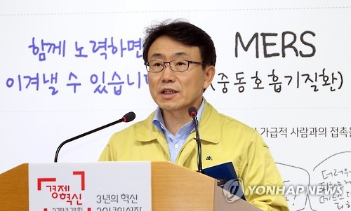 | △ 메르스 현황 설명하는 권덕철 총괄반장 (세종=연합뉴스) 배재만 기자 = 권덕철 중앙메르스관리대책본부 총괄반장이 17일 오전 정부세종청사 보건복지부 공용브리핑룸에서 열린 중동호흡기증후군(메르스) 정례 브리핑에서 메르스 현황에 대해 브리핑하고 있다. 2015.6.17 scoop@yna.co.kr http://blog.yonhapnews.co.kr/f6464 |