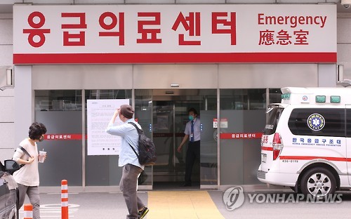 | △ 건대병원 첫 메르스 감염자 발생 (서울=연합뉴스) 김주성 기자 = 중동호흡기증후군(메르스) 확진자가 총 150명으로 늘어난 15일 첫 감염자가 발생한 서울 광진구 건국대병원에서 내원객들이 응급의료센터 앞을 지나가고 있다. 건국대병원에서 발생한 확진자(150번 환자)는 44세 남성으로 이달 6일 76번 환자(75·여·사망)와 같은 병실에 있다가 감염된 것으로 추정된다. 2015.6.15 utzza@yna.co.kr |