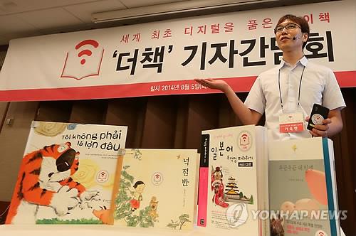 | △ 창비가 지난해 8월 자사의 출판물과 디지털과 연계한 '더책' 서비스 출시와 관련한 기자간담회를 하고 있다. |