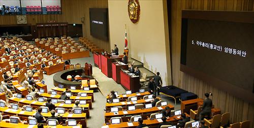 황교안 국무총리 후보자 임명동의안이 국회 본회의를 통과했다. 국회는 오늘 오전 본회의를 열어 황 후보자 임명동의안에 대한 표결을 실시, 재석 의원 278명 가운데 찬성 156명, 반대 120명, 무효 2명으로 가결했다. 원내 5석을 보유한 정의당은 표결에 전원 불참했다. 이로써 황 후보자는 박근혜 대통령으로부터 총리 후보자로 지명된 지 28일 만에 국회의 임명 동의 절차를 모두 마치고 대한민국 제44대 총리로 취임하게 됐다. 이완구 전 총리의 사표가 공식 수리된 지 52일 만에 총리 공백 사태도 해소돼 '메르스 사태' 등 국정을 다잡을 계기를 마련했다.