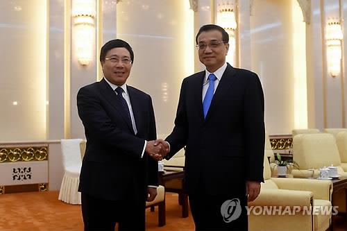 (베이징=연합뉴스) 홍제성 특파원 = 리커창(李克强) 중국 총리가 방중한 팜 빙 밍 베트남 부총리 겸 외교장관과 회동에서 양국간 갈등을 효율적으로 관리하고 양국간 협력을 강화해 나가기로 했다.