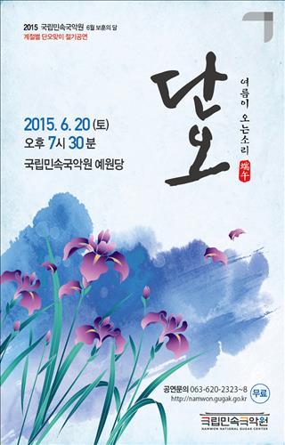 올해는 메르스 여파로 각종 풍속 행사가 취소되거나 최소한으로 진행되는 가운데 남원의 국립민속국악원에서는 20일 '단오, 여름이 오는 소리'를 주제로 정기 공연이 열린다.