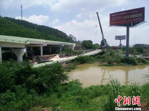 중국신문망에 따르면 지상에서 11m 높이의 고속도로 청난(城南)출구 고가 진입로가 갑자기 무너지면서 고령토 등을 실은 대형 트럭 4대가 지상으로 떨어졌다.