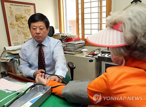 | △ 환자 진료하는 임홍섭 원장 (부산=연합뉴스) 김재홍 기자 = 부산시 사하구 임홍섭 내과 원장이 19일 오전 환자를 진료하고 있다. 임 원장은 부산의 첫 중동호흡기증후군(메르스) 환자를 진료, 지난 6일부터 18일까지 병원 문을 닫았다. 임 원장은 다른 증상 없이 고열만 있는 환자에 대해 메르스 감염을 의심하고 적절한 조치를 취해 접촉자 수를 줄이는 데 크게 기여했다. |