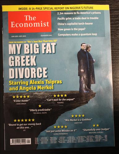 이코노미스트지는 20일 자로 나오는 최신호에서 로맨틱 코미디 영화 '나의 그리스식 결혼'에 빗대어 '나의 그리스식 이혼'이라는 제목의 표지 기사에서 이같이 분석했다.