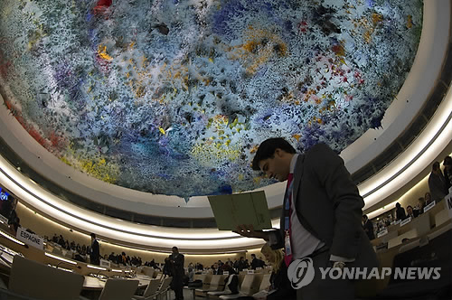 | △ 유엔인권이사회(UNHRC) 정례회의가 열리는 유엔 회의장 (AP=연합뉴스 자료사진) |