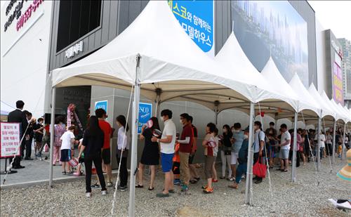(서울=연합뉴스) 박인영 기자 = 중동호흡기증후군(메르스)의 여파로 움츠러들었던 분양시장이 서서히 활기를 되찾으며 6월 셋째 주 주말 전국 곳곳에 문을 연 견본주택에는 큰 인파가 몰려 성황을 이뤘다.