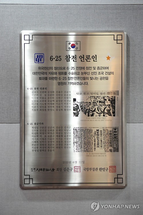 '6·25참전 언론인 명패' 국방부에 걸렸다(종합)