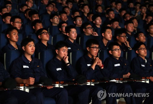 약 1천 명의 장병이 대강당을 가득 메웠다. 자리가 모자라 좌석 사이 통로 계단에 앉거나 맨 뒤에 서서 보는 장병도 많았다.