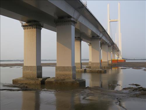 | △ (선양=연합뉴스) 홍창진 특파원 = 올들어 가뭄이 계속되면서 압록강 수위가 사상 최저치를 기록하고 있다. 중국 단둥과 북한 신의주를 잇는 신압록강대교 일대의 유량이 크게 줄면서 평소 강물에 잠겨있던 교각 기초가 드러나고 일대가 뻘로 변했다. realism@yna.co.kr |